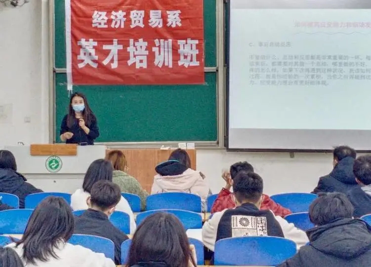 为进一步加强英国365公司学风建设,响应学风建设月活动号召,同时也为了不断提高英国365公司学生会成员及各班学生干部的能力,英国365公司开展了英才培训班活动。英才培训班第三课于2021年11月13日晚上6∶00在4c104开讲,本次英才培训班由房媛媛老师主讲,主题是“如何提高自身能力”。