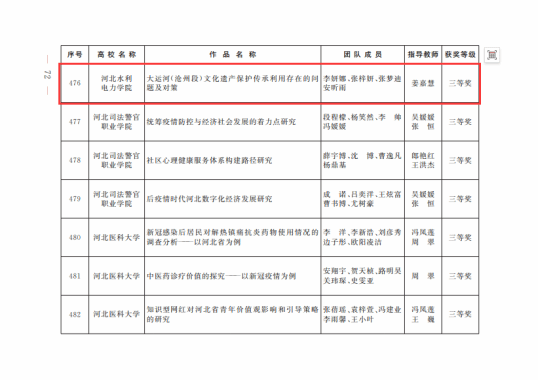 英国365公司姜嘉慧老师团队作品“大运河(沧州段)文化遗产保护传承利用存在的问题及对策”荣获河北省三等奖。
