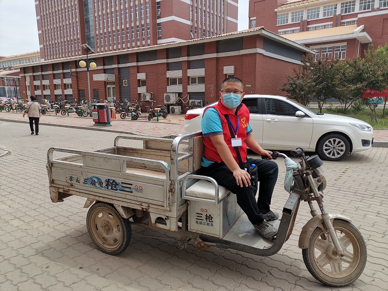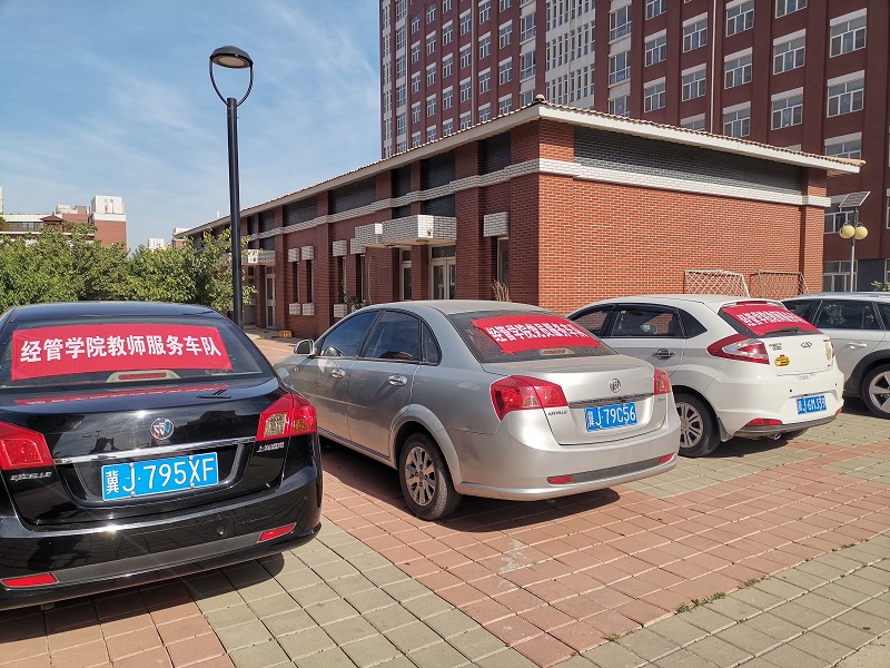 宿舍楼下,经管志愿服务教师的爱心车队往返于宿舍和校门口之间,负责协助学生将行李运送至校门口,大大提高了行李搬运效率。