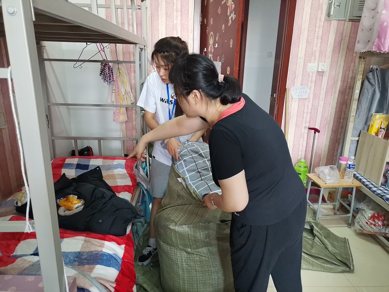 上午7时,所有的志愿服务教师已在学生宿舍门口、宿舍楼下做好迎接返校学生的准备。各班班主任、辅导员、教师志愿者通过QQ、微信、电话等多渠道了解毕业生的需求,提前对学生的宿舍号、床号、家庭详细地址以及联系方式等信息进行了统计。