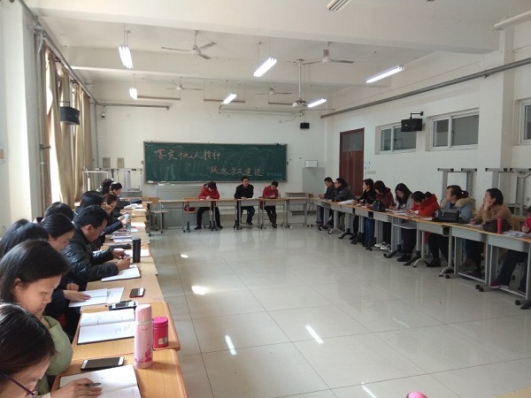 胡书记还对杨汉军同志的主要事迹进行了详细介绍,要求经贸系各位党员老师要将学习宣传杨汉军同志先进事迹与 “两学一做”学习教育相结合。此外,胡书记就近期我系课上、早操及晚自习纪律问题提出了要求,指出寒假刚刚结束,很多学生还没有从假期懈怠的精神状态转变过来,不能立刻投入到紧张的学习工作中来,因此需要全系老师加强管理,形成合力,共同提升学生的学习状态,加强经贸系学风建设。