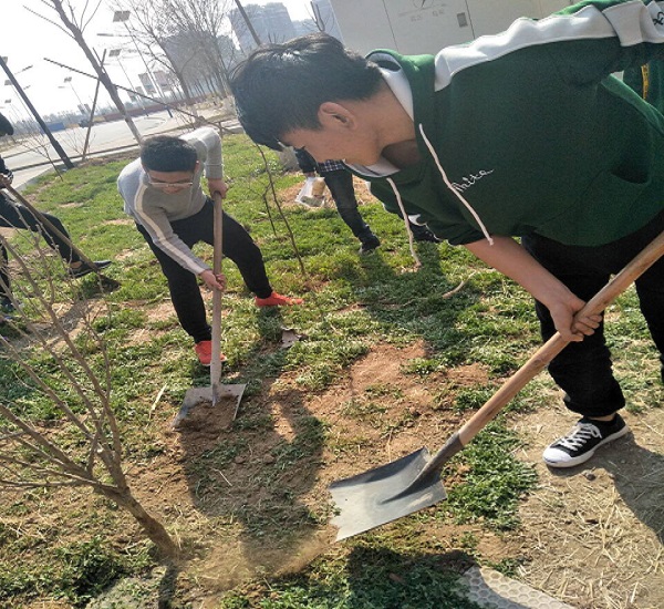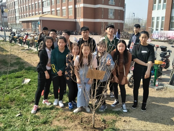 2018年3月25日,电子商务专业学生在学校3号公寓前自发组织开展了春季大学生义务植树活动。