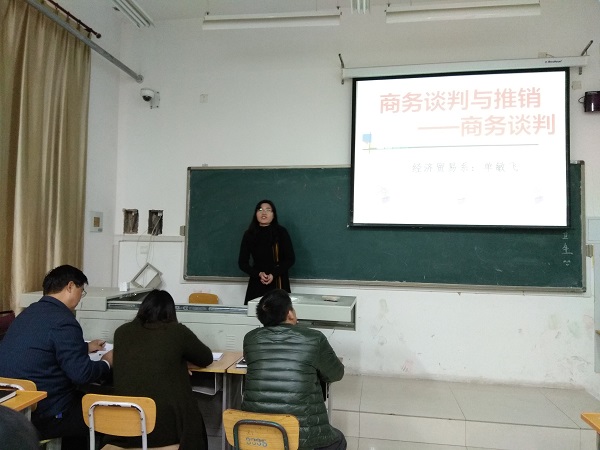 为进一步提高教学质量,完善教学方法,2017年12月26日下午,经贸系在笃行楼A107教室举办教案评比大赛,评比活动由系办公室主任张桂芳老师主持,评委由教务处副处长金艳老师,基础部主任王洪林老师,计算机办公室主任崔炳德老师,经贸系主任芮红老师担任。经贸系全体教师观摩比赛。