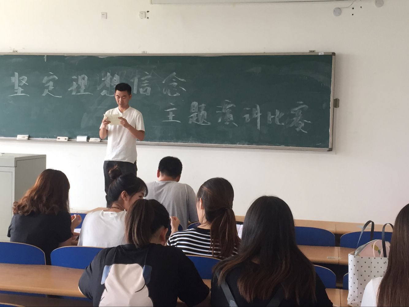 6月23日,在四教b309教室,经贸系学生支部开展了“坚定理想信念”主题演讲活动。团委书记任冠华老师出席比赛,在校学生党员9名进行演讲。