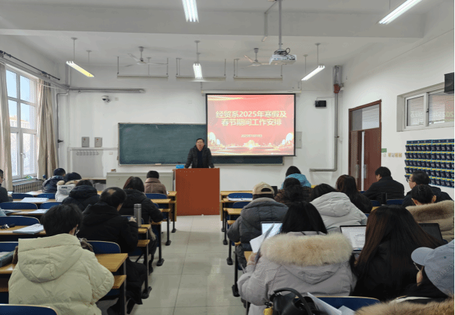 系党委书记苗立峰传达了学校《关于做好2025年寒假及春节期间有关工作的通知》,他强调,持续做好安全稳定工作,要时刻绷紧安全之弦、及时研判风险隐患,坚决杜绝各类安全事故的发生。假期中,要严格执行值班带班制度,严明寒假纪律要求,持续深化作风建设,要切实扛牢党风廉政建设主体责任,教育引导教职员工自觉抵制享乐主义、奢靡之风,带头务实节俭、清廉文明过节。