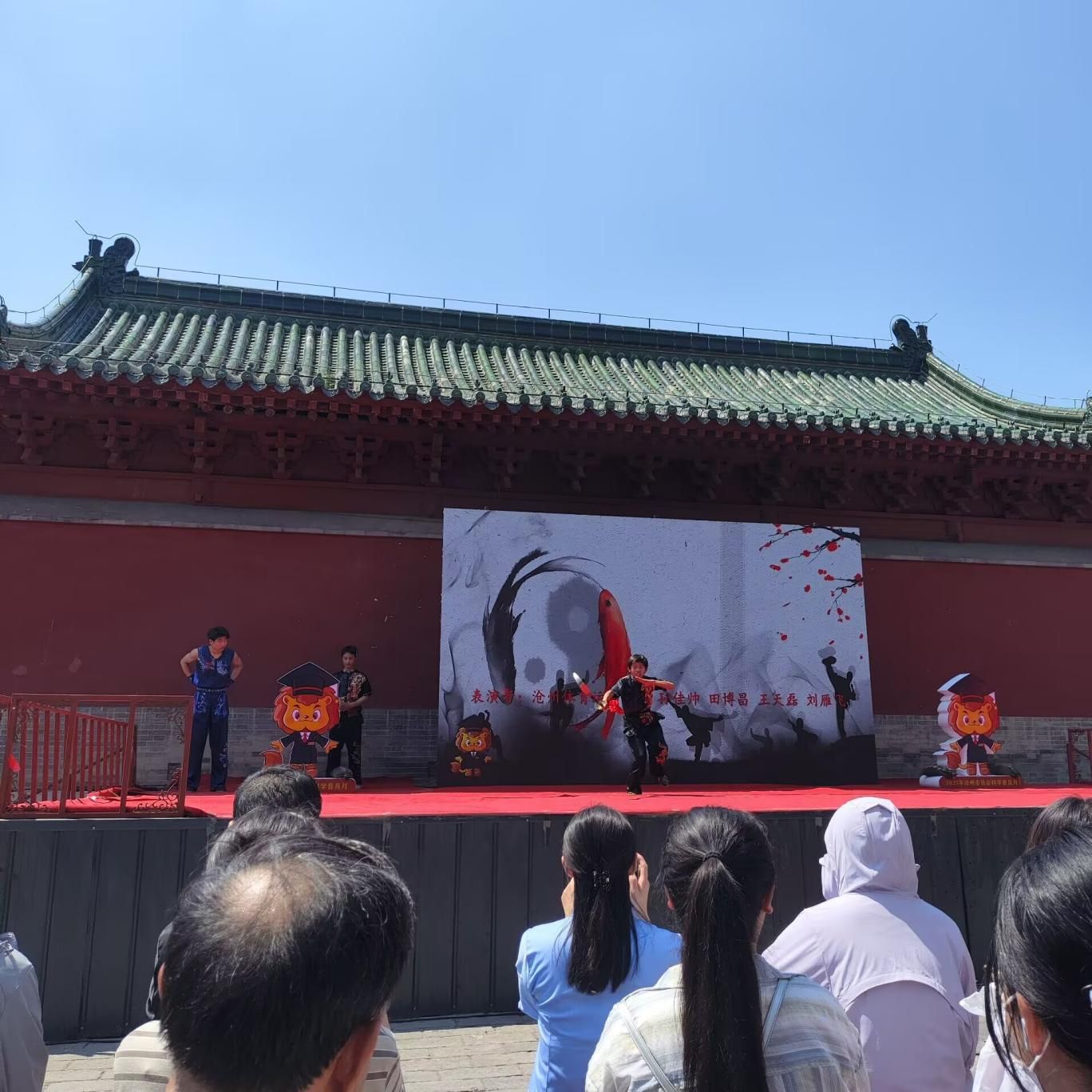 随着开幕仪式的启动,舞台上的节目表演将活动氛围推向高潮。节目形式多样、内容丰富,木板大鼓《沧州运河赞》唱出了千年沧州的变迁;吴桥杂技和沧州武术更是沧州的两个金字招牌。视频中杂技硬气功上刀山、鬼手技术精湛,吸引了国内外的游人参观学习;武术展演节目中,武校学生动作干脆利索,一招一式虎虎生风,让大家看得热血沸腾。还有朗诵,快板等节目,演员们的精彩演绎赢得了现场观众的阵阵掌声。