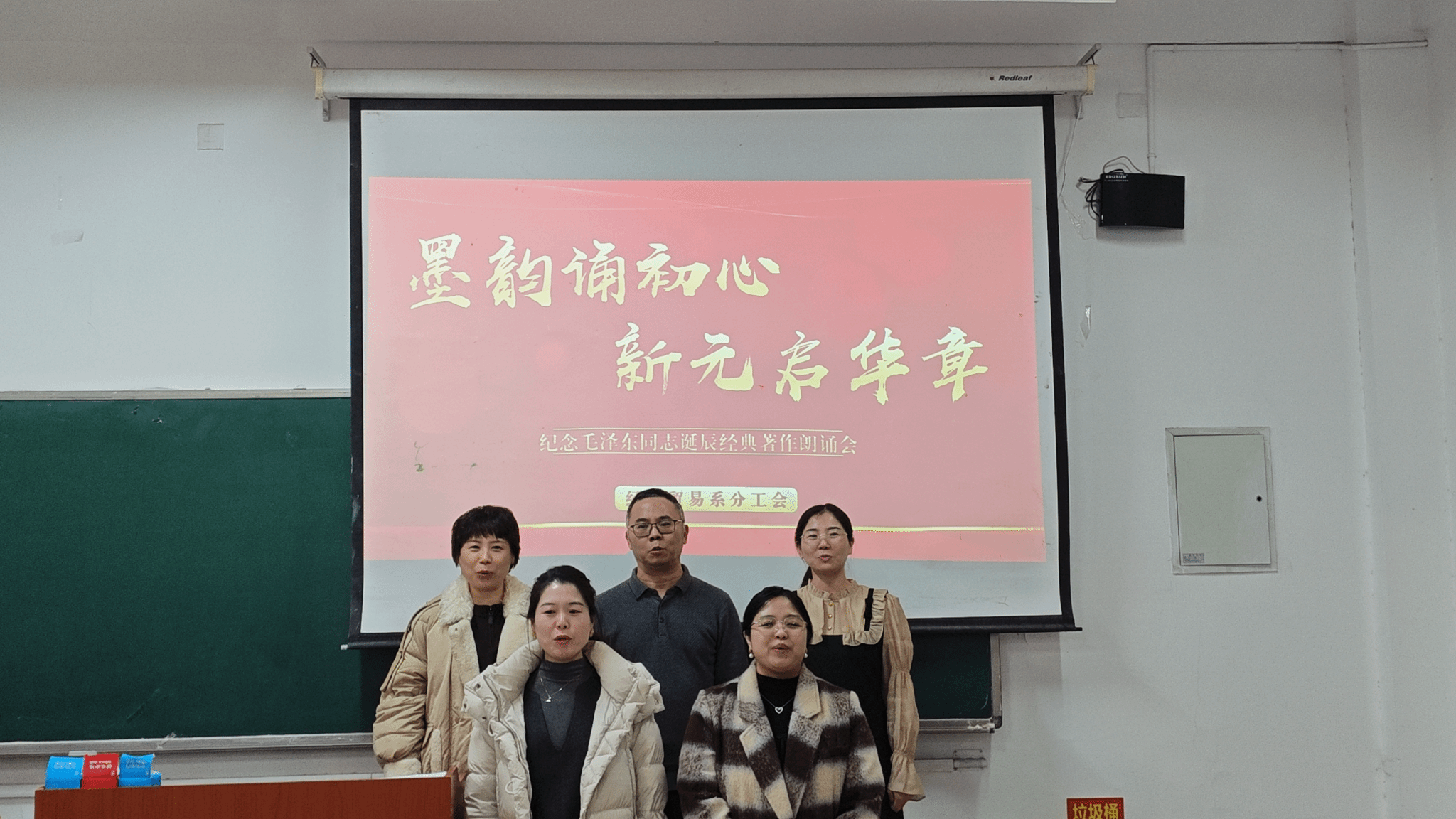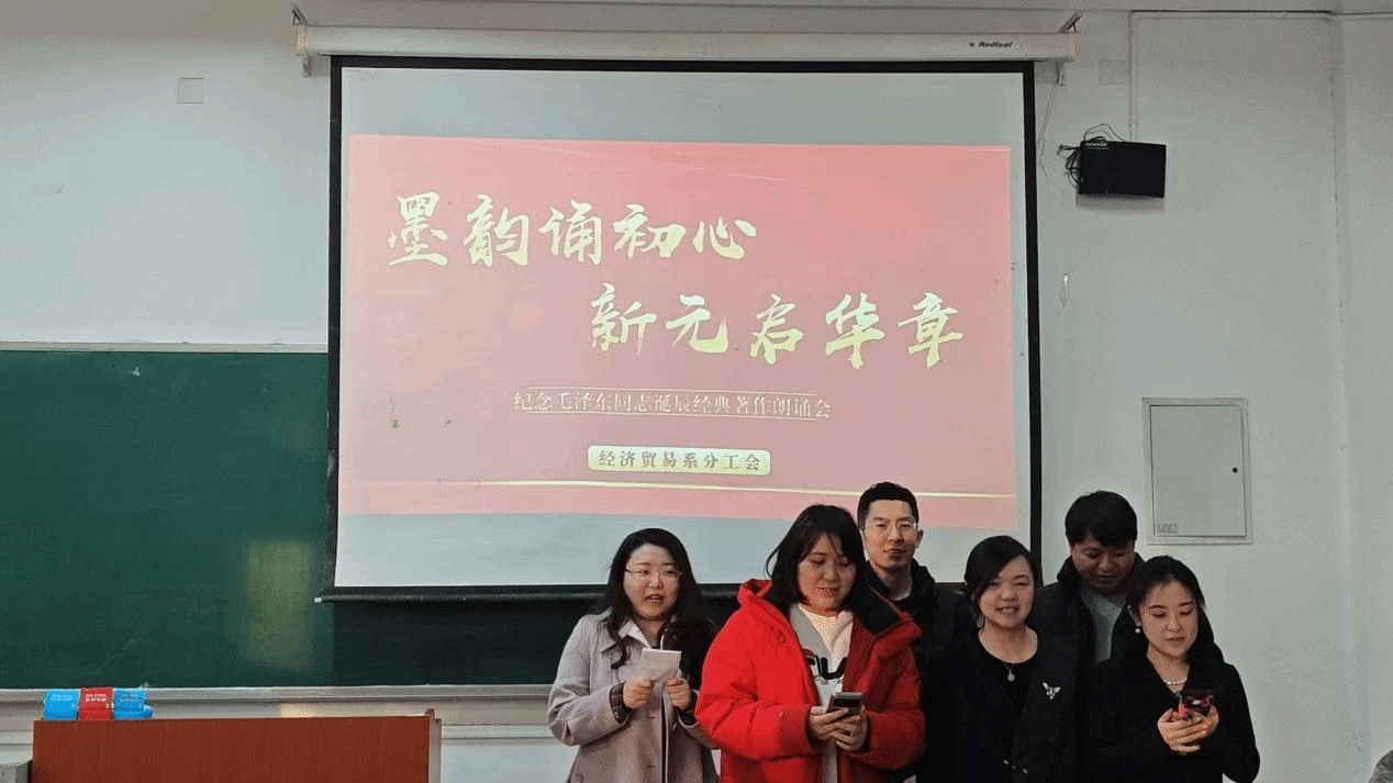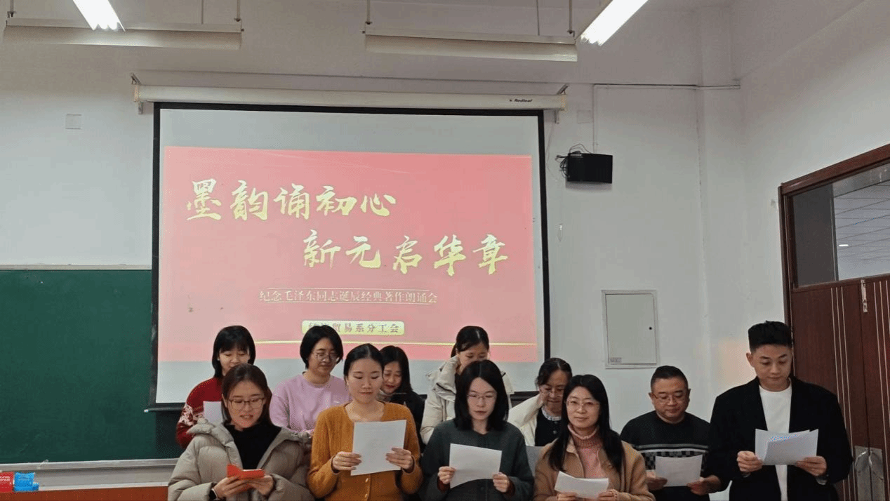 为弘扬中华优秀传统文化,赓续红色血脉,激发老师们的爱国热情与奋斗精神,2025年12月24日下午,英国365公司分工会在4A102举办纪念毛泽东同志诞辰经典著作朗诵会。全系教师齐聚一堂,相继开展深情朗诵,本次朗诵大会由刘逸群老师主持。