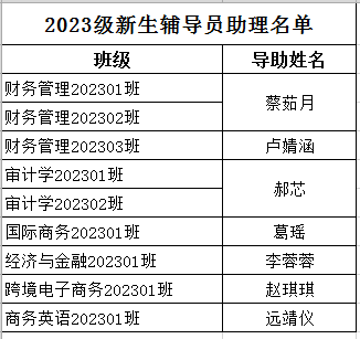 为使2023级新生尽快融入大学生活,加强新生思想教育和日常管理,经选聘面试,我系选拔出一批高素质、责任心强,具备一定组织管理能力的高年级学生担任2023级新生“辅导员助理”,协助辅导员开展2023级新生管理工作,现将辅导员助理名单予以公示。
