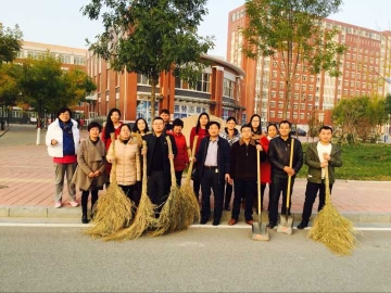 在胡景明书记的带领下,党员老师和学生们纷纷投入到校园环境的清扫中。面对校园西北环路上遗留下来的卫生死角,党员同志们以小组为单位,划分好服务区,纷纷拿起扫帚和铁锨进行清扫,现场呈现出一片热火朝天的劳动景象。虽然尘土飞扬、污垢难除,但是党员同志们迎难而上、争先恐后,一个个忙得汗如雨下。经过近一个小时的义务劳动,校园西北环路和周边草坪等区域内的垃圾、灰尘等被清除干净,校园环境焕然一新。最后大家在卫生区的尽头留影合念。