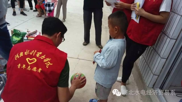 经贸系对接陈浩金、陈浩娟两位小朋友。活动开始后,志愿者把经贸系全体同学精心准备的文具、图书和球类等物品赠送给兄妹两,兄妹两的脸上露出了久违的笑脸。随后,志愿者和小朋友聊天,沟通,做起了游戏,进一步加深了志愿者和留守儿童的感情。经过了解得知兄妹两的父亲常年出差打工,母亲智力有些问题,他们跟着年迈的奶奶一起生活。