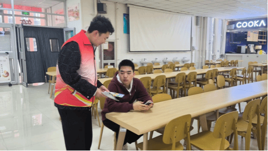 下午3:40,志愿者们在图书馆前集合,整理活动所需物品。4点,活动负责人宣布活动正式开始。志愿者们身着红色马甲,热情高涨,他们将手中的一张张传单,分发给路过的每一位同学,并向他们热情地介绍此次活动。也有不少同学前往活动咨询处对活动进行更加深入细致的了解。通过志愿者们的积极协作以及同学们的热情配合,本次活动得到了很好的宣传。