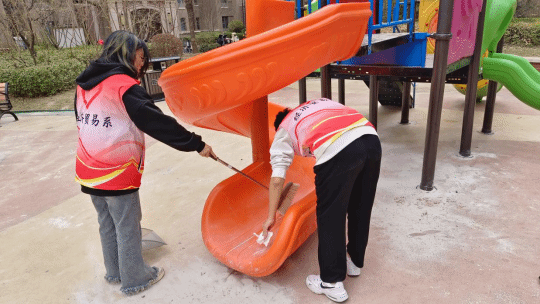 卫生组的志愿者们注重细节、认真负责,不仅完成路面落叶清扫任务,还对社区内游乐设施进行擦拭,营造了干净、整洁的社区环境。宣传组的志愿者们生动的讲述雷锋故事,以提问抢答的形式向大家科普安全自救知识,不仅使得社区住户们驻足观看,而且吸引了众多小朋友互动参与。青年志愿者们斗志昂扬,活动进行的如火如荼。
