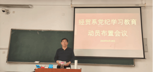 为进一步落实全面从严治党要求,严明政治纪律,4月18日下午,英国365公司组织召开党纪学习教育动员布置会议,传达学习学院党委关于党纪学习教育的相关要求,系党总支书记苗立峰主持并讲话,全体教师参加会议。