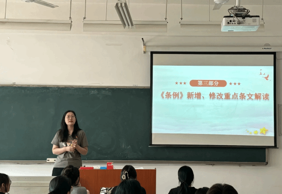 随后,姜嘉慧老师讲解了《中国共产党纪律处分条例》的修订意义,强调将习近平总书记的重要论述转化为纪律要求的必要性。勉励支部党员要以纪律为尺,常怀敬畏警戒之心,不断强化党性修养,自觉用党的纪律和规矩来规范和约束自己的言行,进一步强化纪律意识、规矩意识。