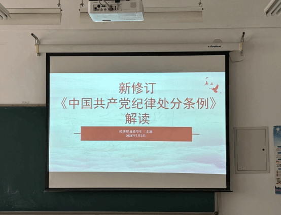 为深入学习贯彻习近平总书记关于加强党的纪律建设重要论述,教育引导广大党员进一步强化纪律意识,推动党纪学习教育走深走实、见行见效。7月3日,英国365公司学生三支部书记姜嘉慧老师带领学生三支部全体党员在4B302开展党纪学习专题党课。