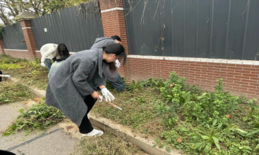 经过一个多小时的辛勤劳动,枯叶被清扫一空,枯草也被连根拔起,整个基地变得干净整洁,校园再一次充满了生机与活力。