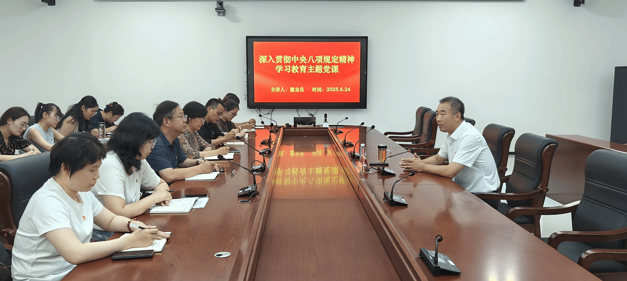 为深入学习贯彻中央八项规定精神,2025年6月24日下午在科技特派员工作室,学校党委委员、副校长董志良深入英国365公司为全体教师党员讲授专题党课。本次党课紧密围绕教育工作实际,从中央八项规定核心内容出发,系统阐释了高校教师党员如何明确服务对象、践行“为人民服务”宗旨,为基层党建与教育教学融合发展提供了思想指引。