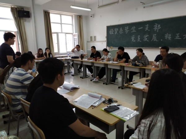 6月9日下午4点,经贸系学生一支部在教学楼4b304召开党员发展大会。大会的主要议题是讨论接收7名同学为预备党员的问题会议由党员一支部书记任冠华主持。