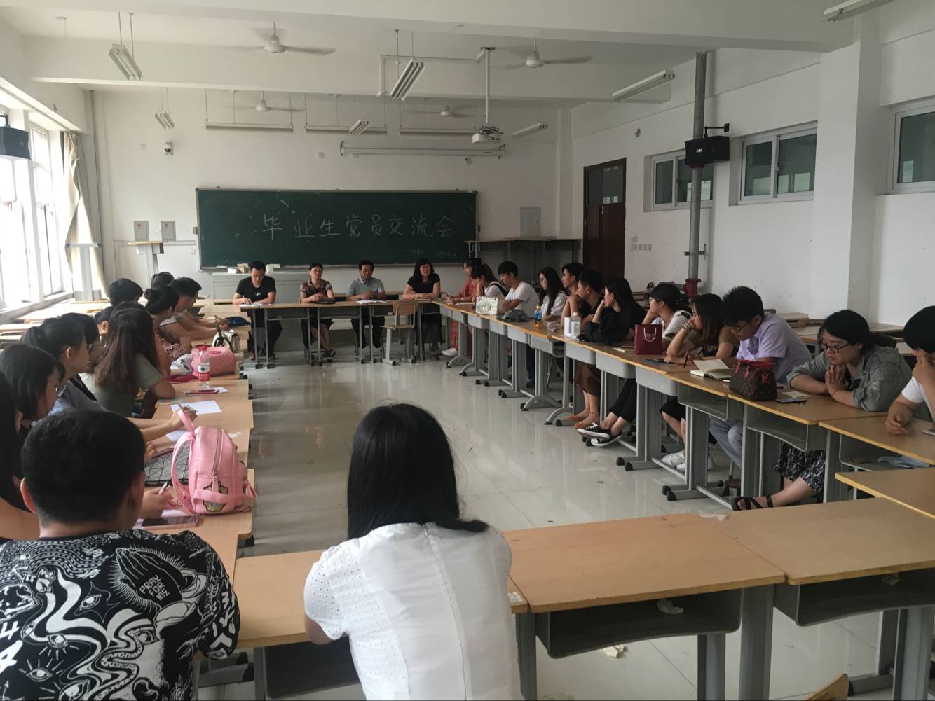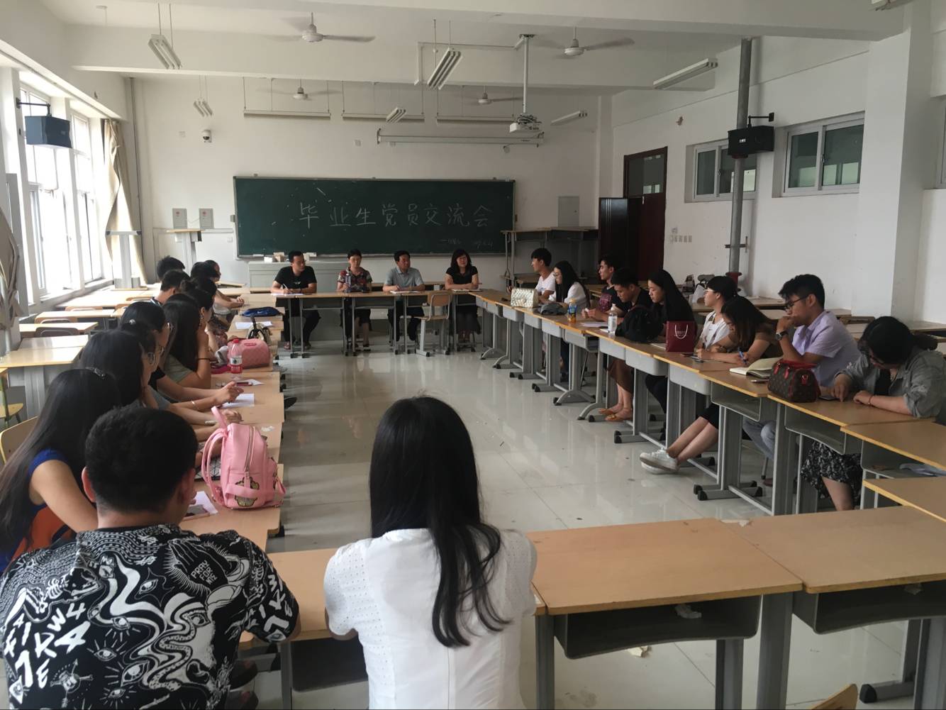 6月21日,经贸系在四教b208召开毕业生党员交流会。经贸系书记胡景明老师、主任芮红老师,学生一支部书记任冠华、二支部书记李桂然老师出席,全体毕业生党员参加会议,会议由任老师主持,此次交流会的主题是顶岗实习半年的感悟,对课程设置和学校的建议等。
