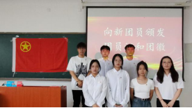大会第三项,英国365公司学工办辅导员于尧老师向新团员代表颁发团员证和团徽。这不仅仅是一个简单的仪式,更是对新团员们身份的确认,佩戴上团徽,就意味着要肩负起作为一名共青团员的责任和使命。