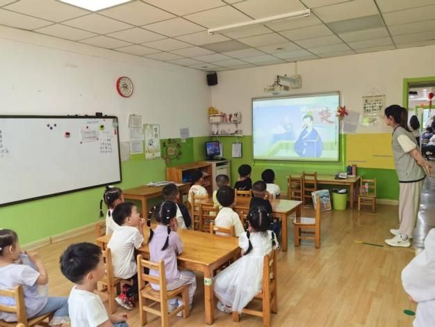 活动当天,同学们分组带领中班和大班的小朋友们开展手工制作活动。主持人热情洋溢的开场中正式拉开帷幕。主持人通过提问互动的方式,引导孩子们回忆端午节的习俗,随后播放了生动有趣的端午节主题动画视频,让孩子们更加直观地了解端午节的传统习俗。孩子们目不转睛地盯着屏幕,被视频中的精彩内容深深吸引。
