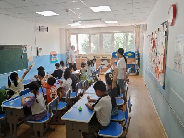 在大班教室,“七彩粽子”橡皮泥明信片制作活动同样精彩。同学们耐心地引导小朋友们将捏好的粽子、龙舟、香囊等端午节有关习俗物品粘在空白明信片上,再添加装饰,创作出独一无二的端午明信片。