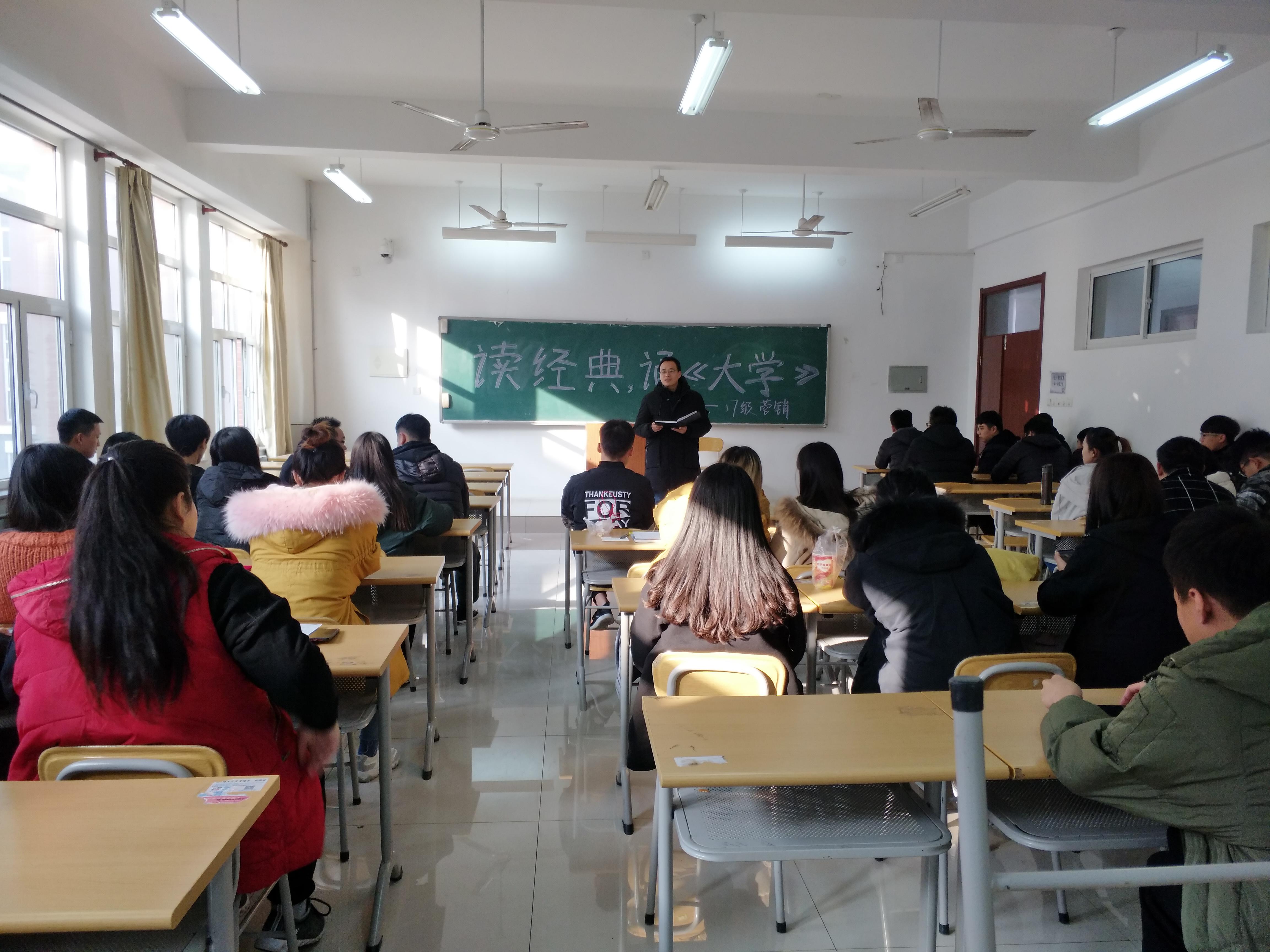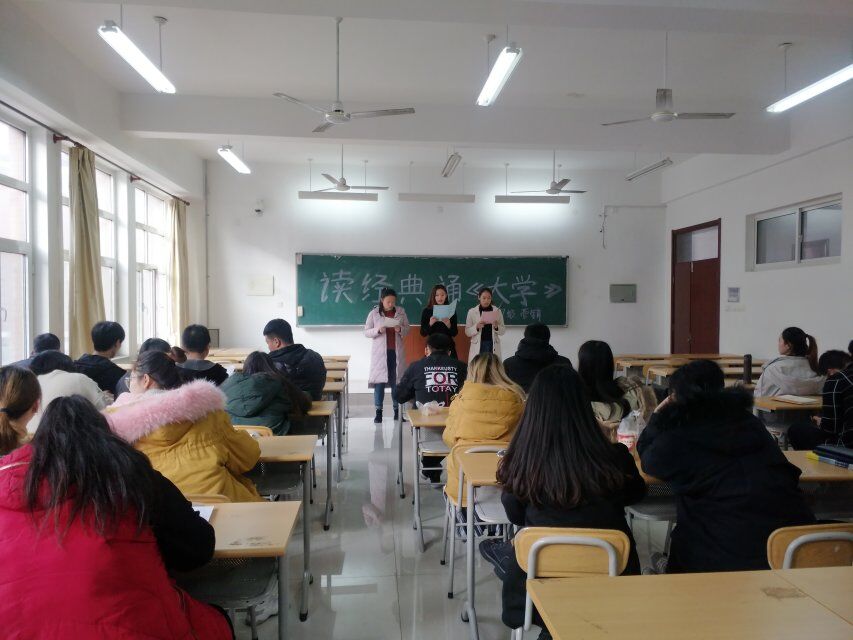 为进一步推进校园文化建设,构建学习型校园,让更多的人认识国学,了解国学,徜徉在中华经典长河,感受博大精深文化,17级市场营销专业于11月22日上午8:45在3a203举办了“读经典,诵《大学》”的朗诵比赛。