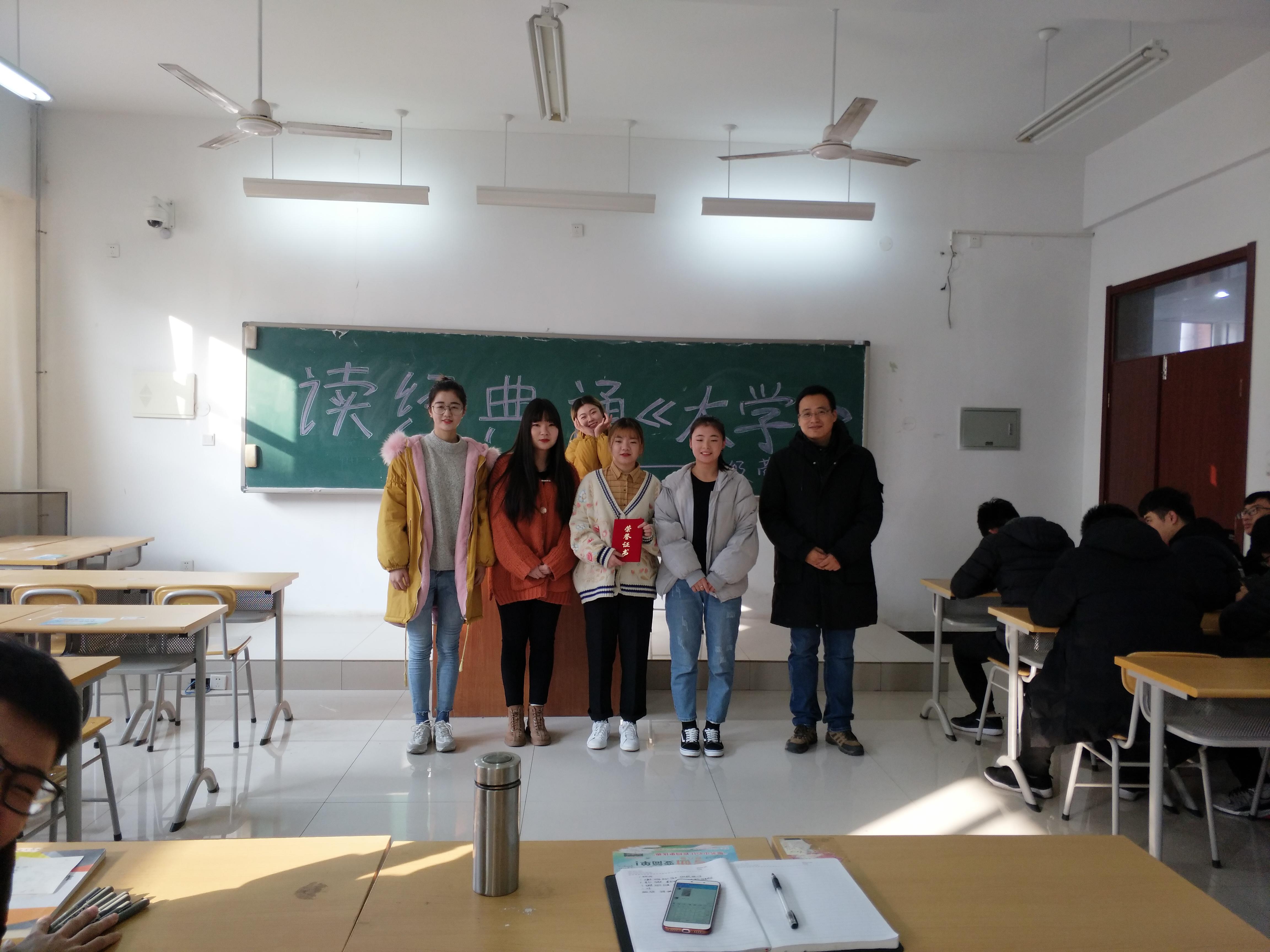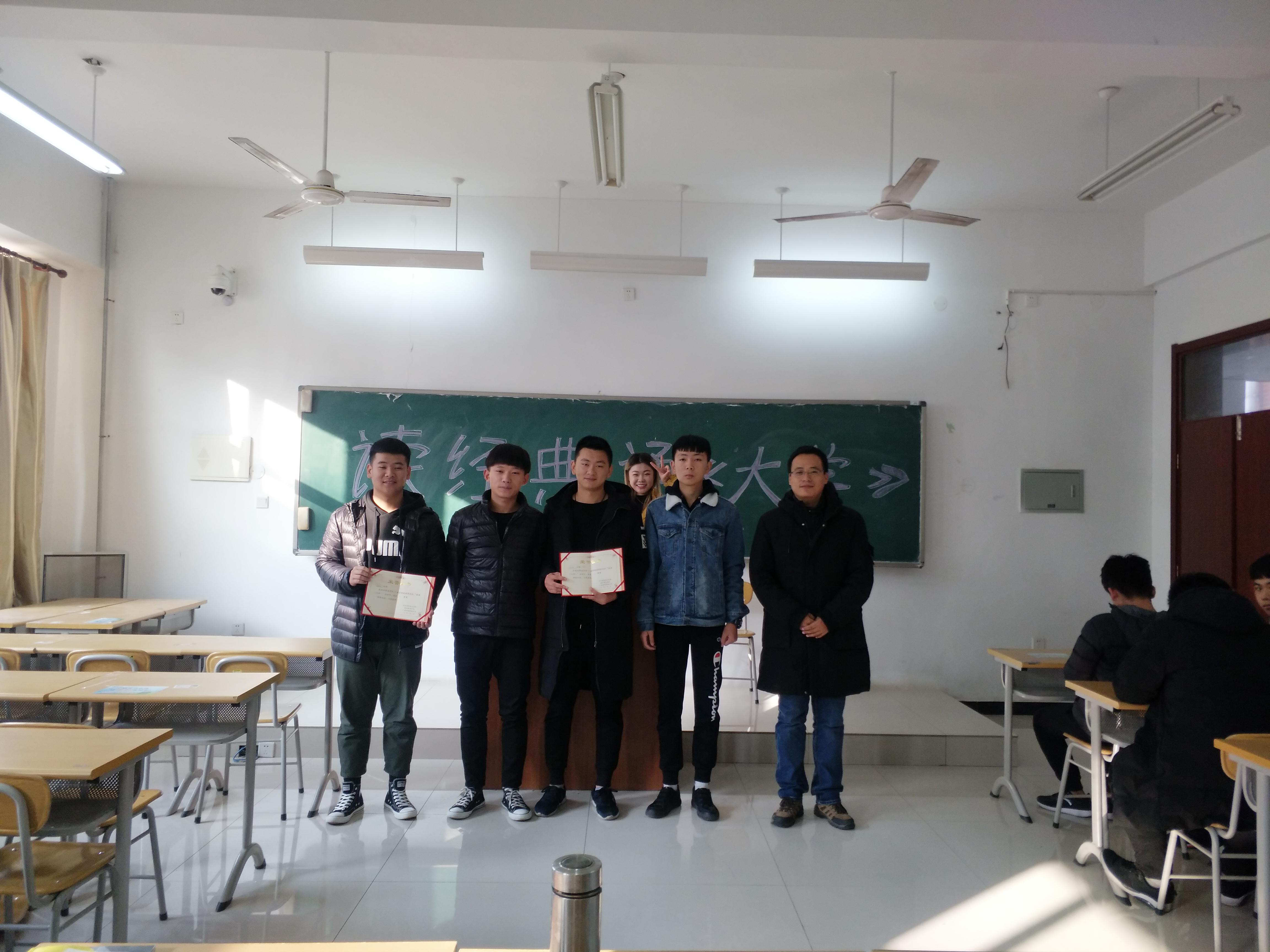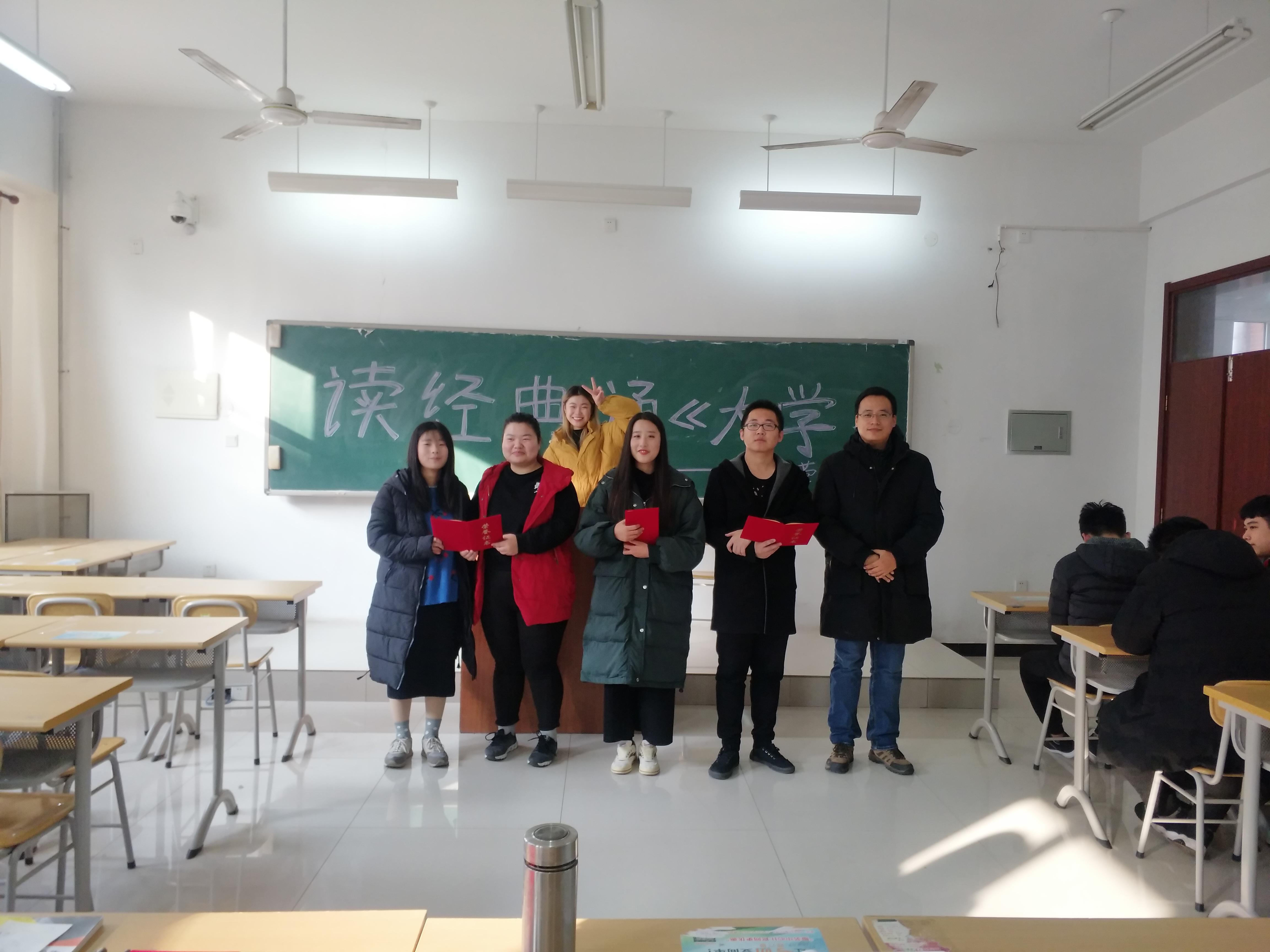 最后,由辅导员任冠华老师为一二三等奖获得者颁奖,任冠华老师对此次比赛做了最后的总结,希望大家以后能踊跃参与班级活动,在各方面锻炼自己的能力,要将《大学》带给我们的精神不能只停留于在口头上,更要付诸于行动。《大学》这本书,获益良多,希望我们在读了这本书后都能成为高尚的人、纯粹的人、有道德的人、对人民有益的人,团结起来携手建设我们的美好明天!