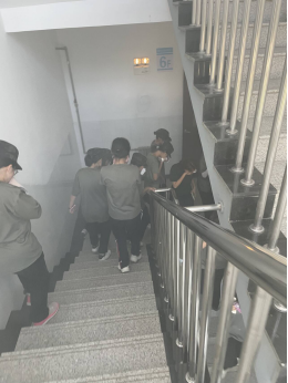 下午14时30分,随着警报声骤然响起,消防演练正式拉开序幕。全体师生迅速响应,按照预先制定的应急预案,有序进行紧急疏散。学生们在各楼层引导员的指引下,用手捂住口鼻,弯腰低姿,沿着既定的安全路线快速而有序地撤离到指定的安全地带。整个过程紧张有序,未发生任何拥挤、踩踏等安全事故,充分展示了师生良好的应急反应能力和团队协作精神。