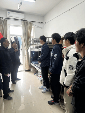 在检查过程中,苗书记带队深入每一间宿舍,对宿舍内务进行细致检查,重点评估床铺整理、个人物品摆放、卫生清洁等方面。苗书记向同学们强调,宿舍是校园精神文明建设的重要窗口,进行规范的内务整理不仅能培养大家生活有序和良好的卫生习惯、行为习惯,同时也是为了训练大家注重细节、严谨认真的办事态度。对于内务整理不规范的宿舍,各班辅导员向宿舍长提出整改意见,并要求宿舍长及时反馈宿舍整改情况。同时,辅导员深入宿舍进行安全隐患大排查,聚焦电器使用规范、应急通道畅通等关键领域。对于发现的个别不规范现象,如电线私拉乱接、杂物堆积堵塞逃生通道等问题,立即指出并要求限期整改,确保不留死角。
