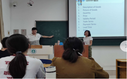 在9月份进行的“双教师”合作教学中,企业主讲教师结合课程教学大纲和目标,选取真实经典函电案例,以外贸流程为顺序,对外贸函电的写作技巧、客户开发、报价和价格谈判等进行讲解,并通过模拟发送邮件进行教学成果验收。为了进一步提升授课效果,董艳萍老师会把握授课环节和节奏,把行业最前沿的知识和企业实景展现在学生面前。通过合作,既讲授了写作技巧,又展现了真实案例处理经验,丰富了课堂内容。