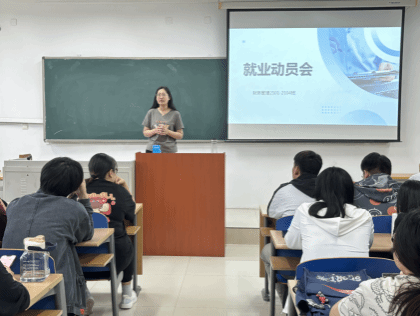 首先,王桐岳老师向大家讲解了此次就业动员大会的目的,旨在加强职业教育和就业指导,让同学在实际工作中提升自己的专业能力,增强自己的专业本领,提前抓住机遇,为以后就业工作打下良好的基础。