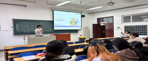 此外,董辉老师也分享了往年优秀毕业生的案例,以此激励同学们。她提到,成功完成实习和毕业论文不仅需要努力和坚持,还需要合理的规划和时间管理。因此,董辉老师建议同学们制定详细的计划,并且定期检查进度,确保每个阶段的目标都能按时完成。