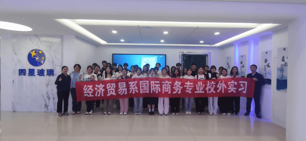 4月21日下午,董辉和周游老师带领同学们参观国家级“专精特新”企业——沧州四星玻璃股份有限公司的5G“智慧工厂”。通过智慧大屏,同学们直观感受了5G技术在车间排产、质量监测、仓储管理等场景的应用。该系统可以利用数据采集和可视化分析,实时掌握订单完成进度、生产动态、质量缺陷、设备状态等情况,及时发现波动及异常,使产品生产效率和质量得到大幅度提升。接着学生们参观了两个生产车间,学生切实感受到了车间的运作,体会到了生产链条化、无人化。最后,外贸经理孟江涛讲述了个人发展经历,切实指出做国际贸易需要过硬的专业素质、敏锐的反应能力、强有力的沟通能力以及情感交流能力,同时鼓励国际商务学生明确个人目标,向着目标进一步努力,学生们深受启发。