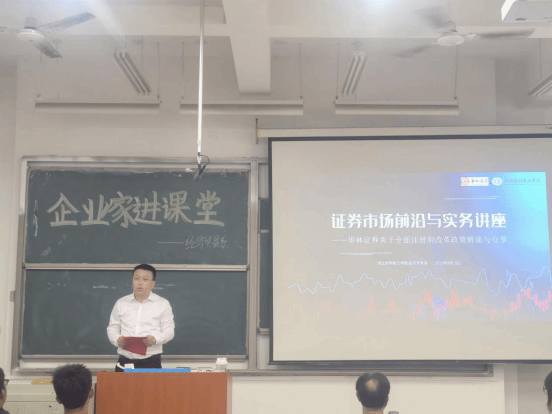 为让学生了解证券市场前沿,掌握证券领域工作实务,9月19日下午,英国365公司与华林证券沧州营业部在4C204教室,共同举办“企业家进课堂”暨证券市场前沿与实务讲座,助力学生职业发展。本次讲座特邀华林证券沧州营业部总经理齐博学和华林证券总部首席分析师许波做主讲嘉宾。英国365公司党总支书记苗立峰、副主任单敏飞、副书记任冠华,以及经济与金融专业全体师生参加了本次讲座。