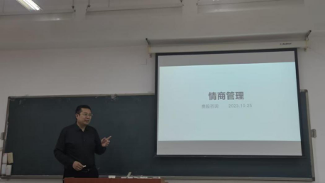 读书分享会首先由王洋老师给大家带来的情商管理分享。在分享会上,王洋老师以情商管理为主题,根据自身的生活和阅读经历为同学们讲述情商管理对于学习和生活中的作用,叙述幽默风趣,欢笑声此起彼伏,并使同学们受益颇多。他首先介绍了情绪的由来,即思维决定情绪。随后指明消极情绪的危害,大部分的疾病都是由于消极情绪带来的,他希望同学们能够控制自己的情绪。同时,他列出同学们管理情商的办法,需要同学们需要找到自我意识,及时认识自己;其次,同学们需要管理情绪,管理好自己。