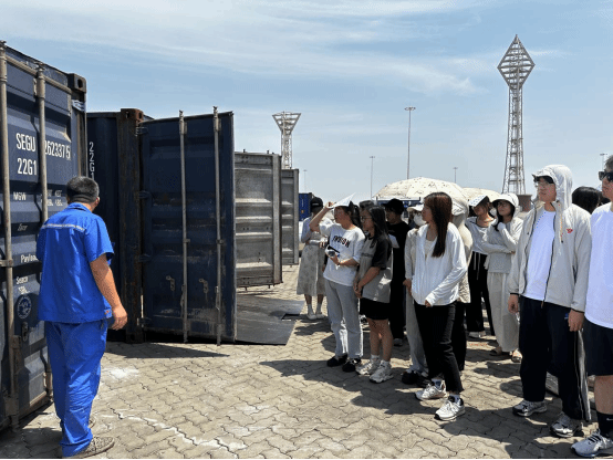 随后,我们来到了渤海投资集团国际物流中心项目区。在这里,我们亲眼目睹了现代化物流设施的高效运作,货物的装卸、运输和仓储环节紧密衔接,也了解到集装箱的概况。这使我们深刻认识到在国际商务中,高效的物流体系是保障贸易畅通的关键环节,它不仅能够降低成本,还能提高企业的竞争力。