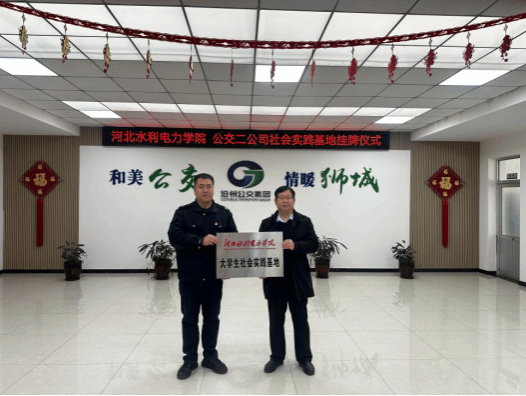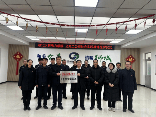 为深入学习贯彻习近平新时代中国特色社会主义思想,落实“时代新人铸魂工程”,进一步构建“大思政”工作体系和“三全育人”工作格局,深化实践育人效果,英国365公司与沧州公交二公司达成合作意向,于2024年1月5日举行大学生社会实践基地挂牌仪式。沧州公交二公司经理高文奎,副经理丁杰、刘婷婷、王恒,部分线路队长、骨干与英国365公司党总支书记苗立峰,党总支副书记任冠华,学工办辅导员房媛媛、刘逸群、于尧,组织员郑义共同参加了本次挂牌仪式。
